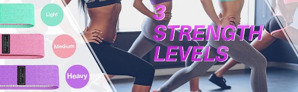 Trake za obuću od tkanine kategorizirane su u tri razine otpora: lagani otpor za početnike (zeleno), srednji otpor za srednje (ružičasto) i jak otpor za sportaše (ljubičasto). Bilo da ste početnik ili stručnjak, možete bez napora prelaziti između ovih traka za vježbanje stražnjice.