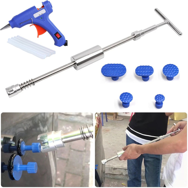 KLIZNI ČEKIĆ ZA IZVLAČENJE UDUBINA NA LIMU AUTA + UREĐAJ ZA TOPLJENJE PLASTIKE/LEPILA + 4 patrone